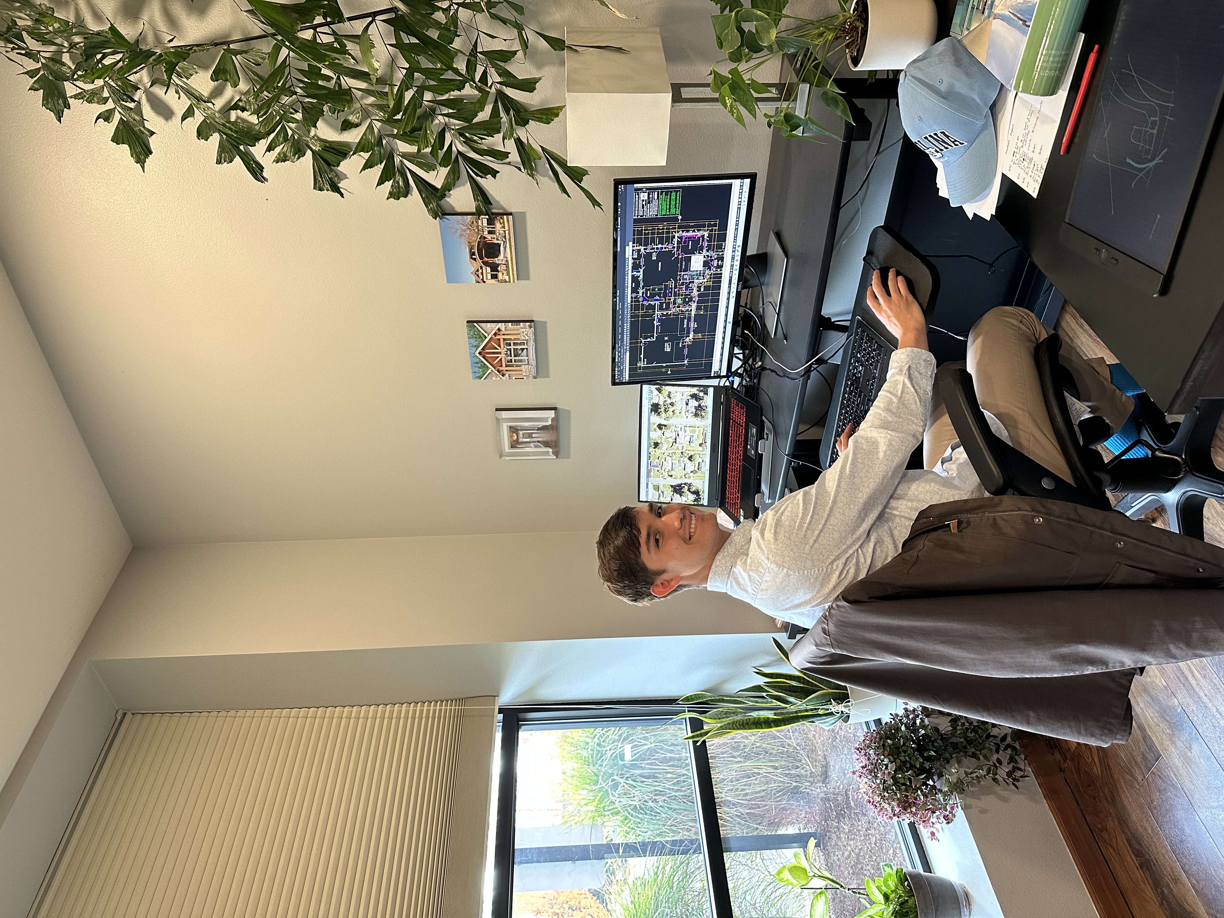 Today, Austin is an Architectural Designer at a residential architecture firm, where he drafts remodels and additions, monitors project progress through site visits, meets with clients, and helps turn ideas into homes families can enjoy. What he loves most is seeing his drawings come to life and watching months of design work become something real and meaningful.